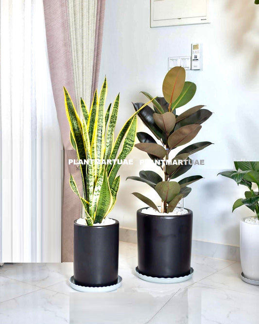 Potted Combo: Rubber Plant + Snake Plant LARGE in Ceramic Pots